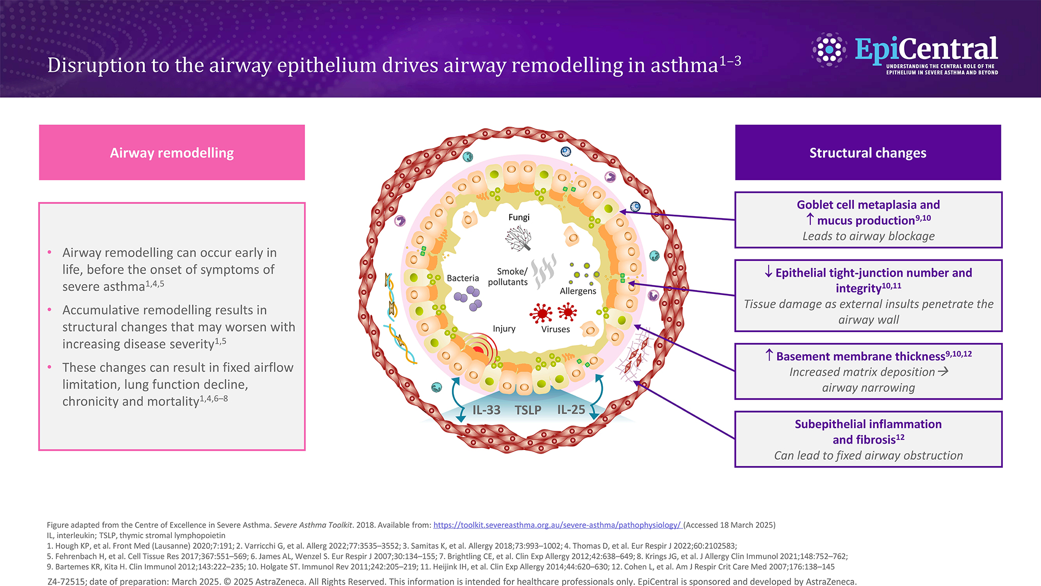 There is also a decrease in the number and integrity of tight junctions,1,4 leading to tissue damage as external triggers are able to penetrate the airway wall.